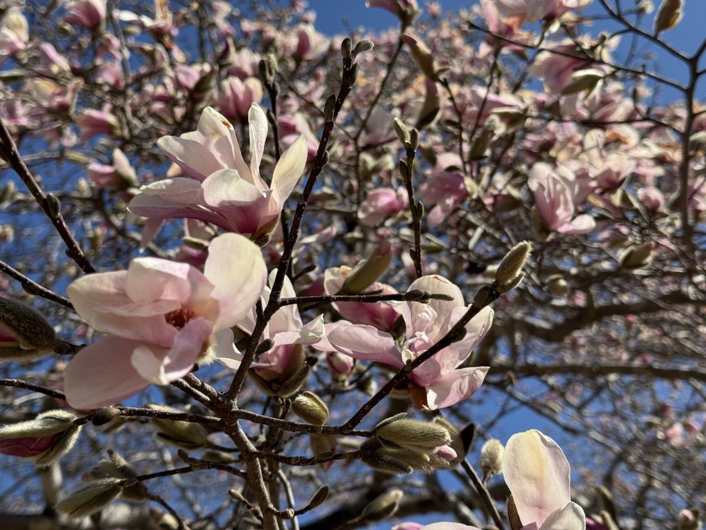 何時もながら、新聞の一面とコラムにに目を通す。ふと、思い出した事がある。先日あるゴルフ場をプレイした時、キャディーさんがこぶしが綺麗に咲いてますねと指さした。指さした先は見事な花盛の状態だった。その時の写真を投稿する事にした。この日、久しぶりにコンペに参加したN氏もこの花を見ただろうか?と思った。